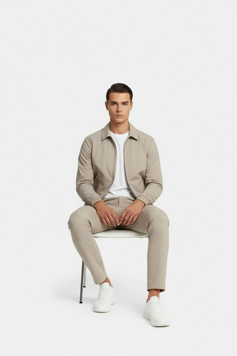 This men’s Tech Suit is designed for those who appreciate both comfort and style. Made from high-quality stretch fabric, it offers maximum freedom of movement and an ideal fit. The slim-fit cut creates a sleek, modern silhouette, while the durable material ensures long-lasting quality.