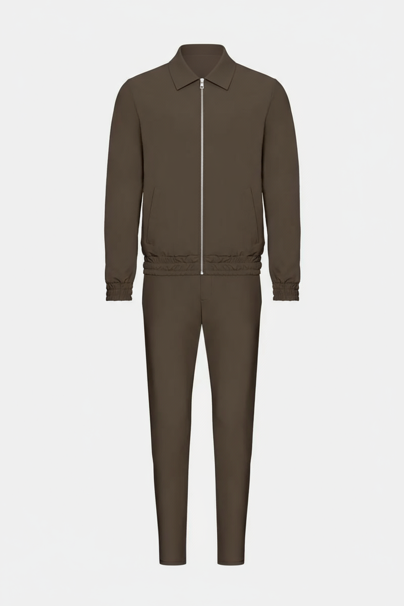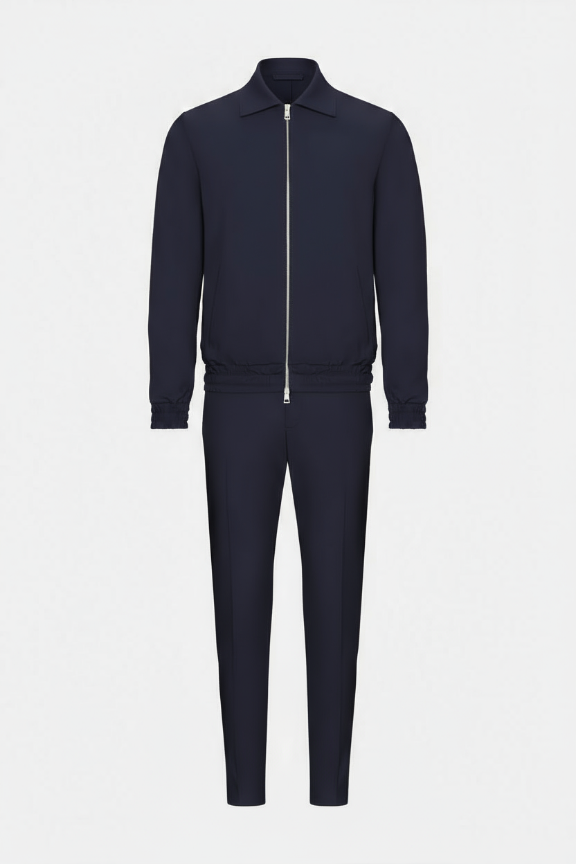 This men’s Tech Suit is designed for those who appreciate both comfort and style. Made from high-quality stretch fabric, it offers maximum freedom of movement and an ideal fit. The slim-fit cut creates a sleek, modern silhouette, while the durable material ensures long-lasting quality.